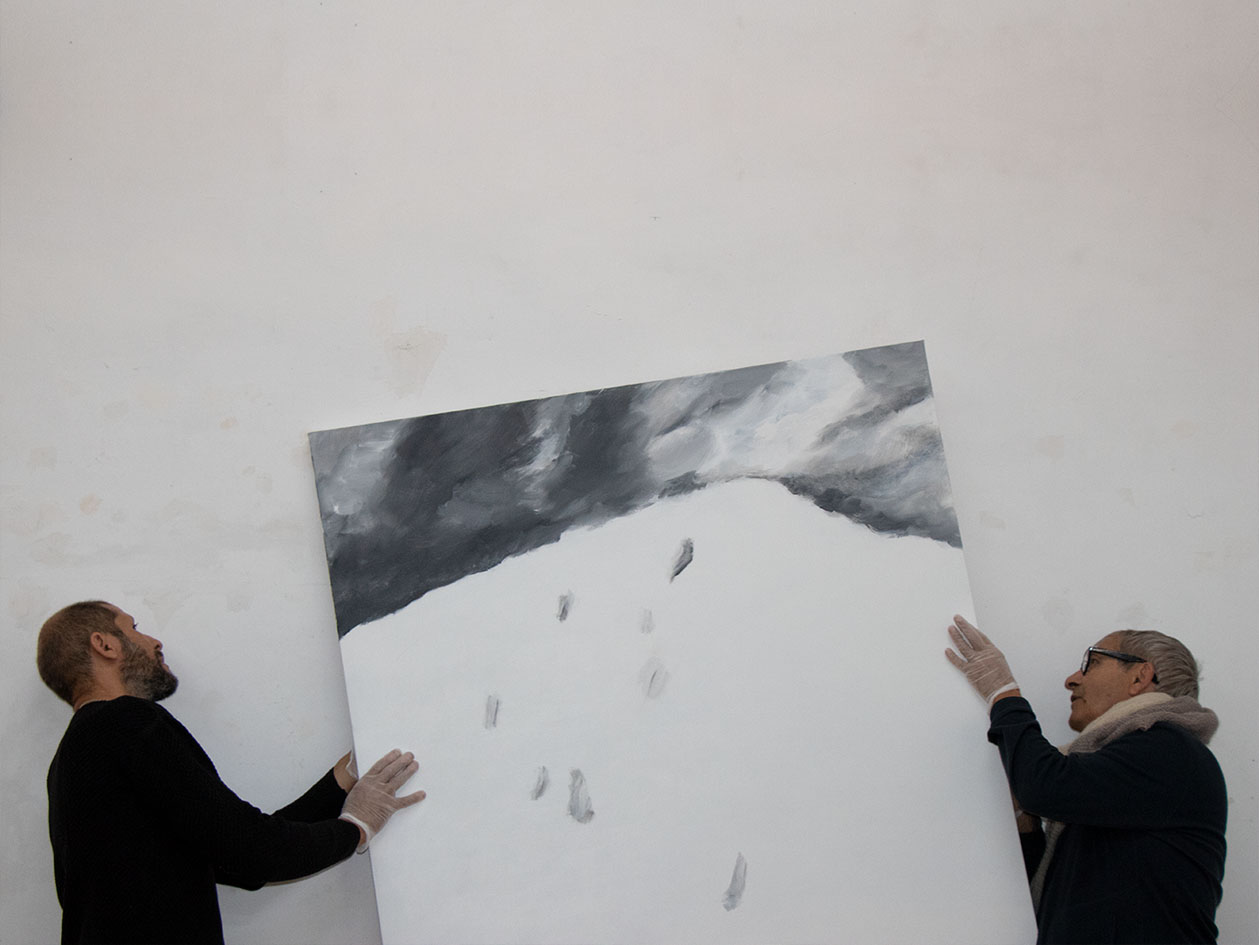 The slabs of marble reveal the cut-out of Sainte-Victoire which thus appears in negative.